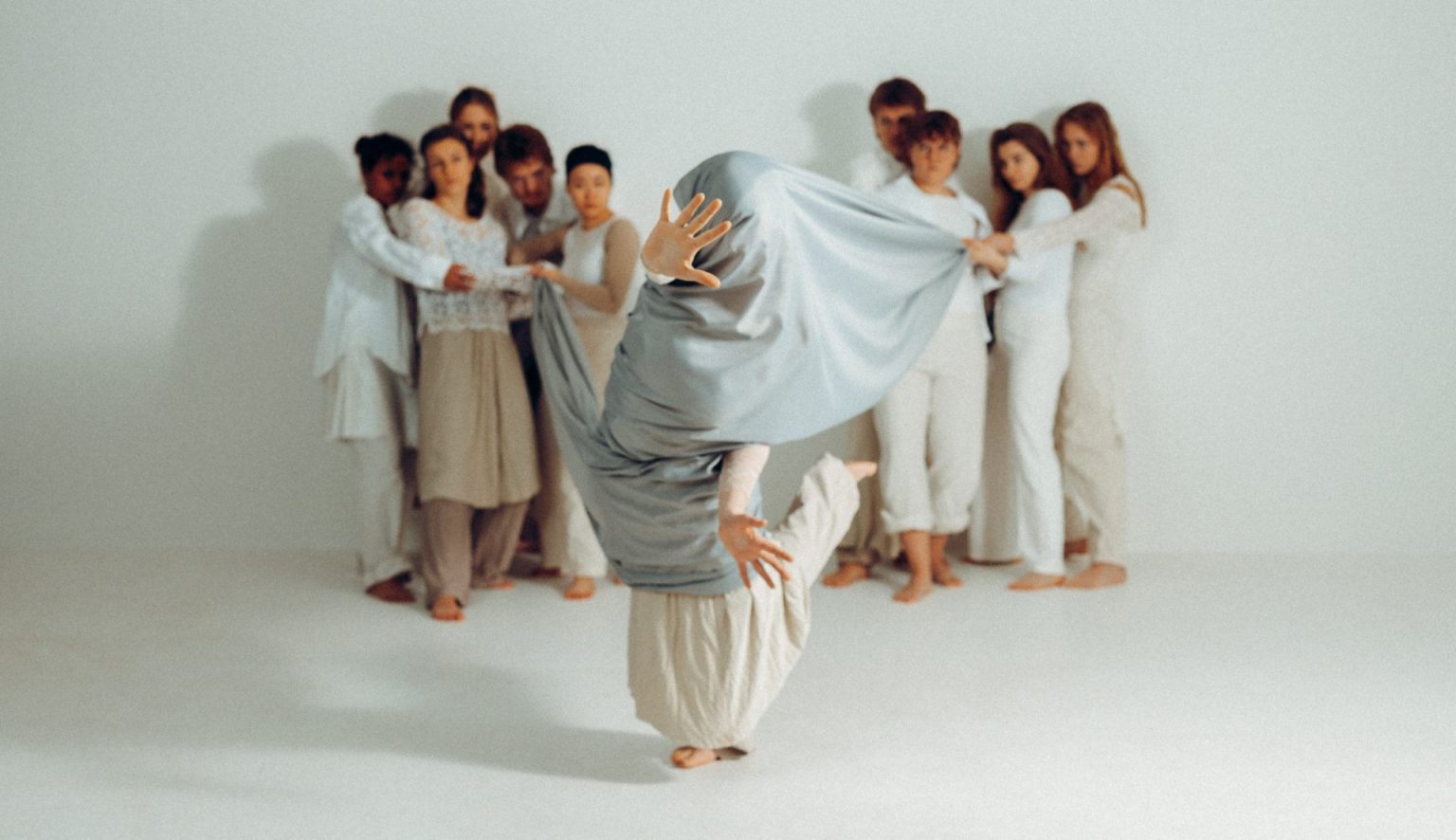 Like a butterfly breaking out of its cocoon, the dancers unfold between light and shadow.